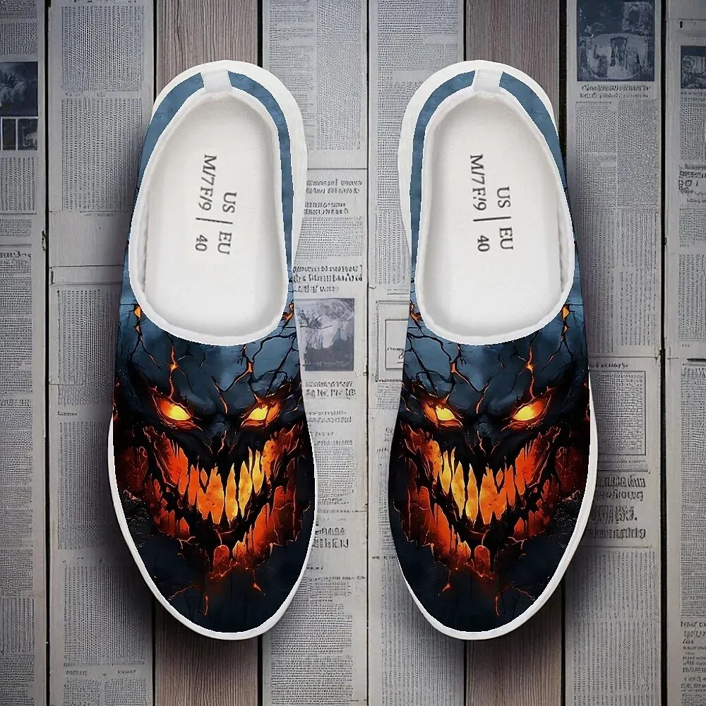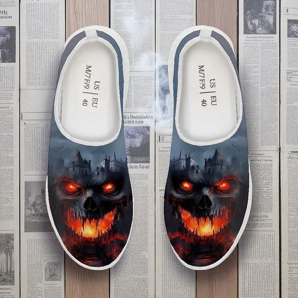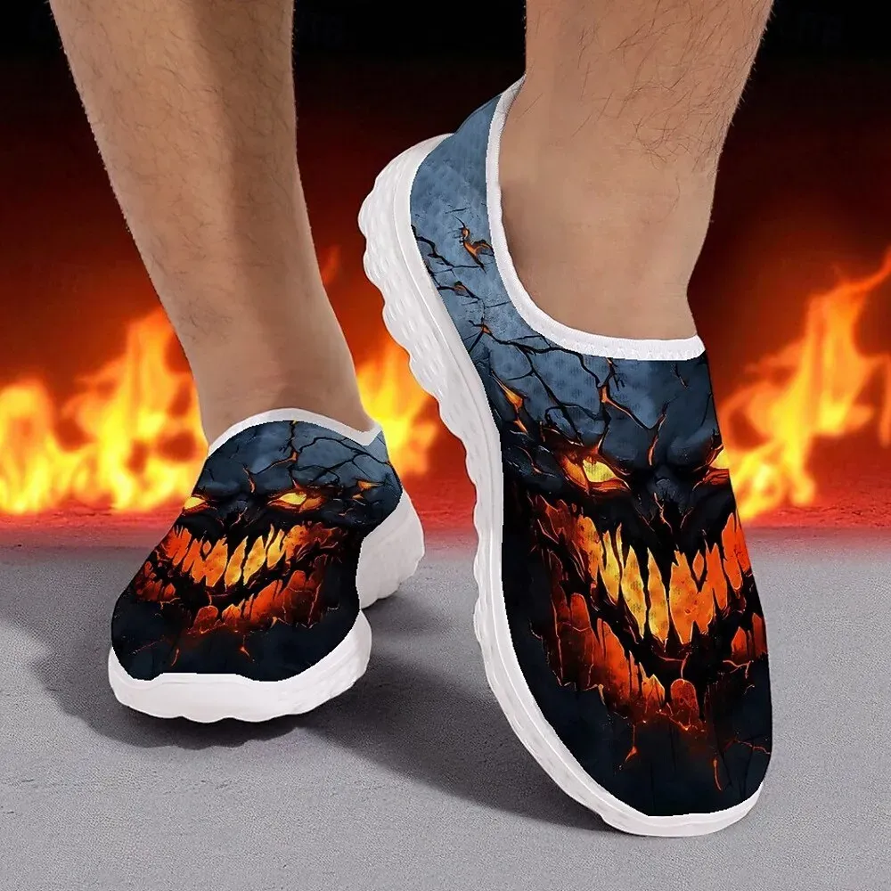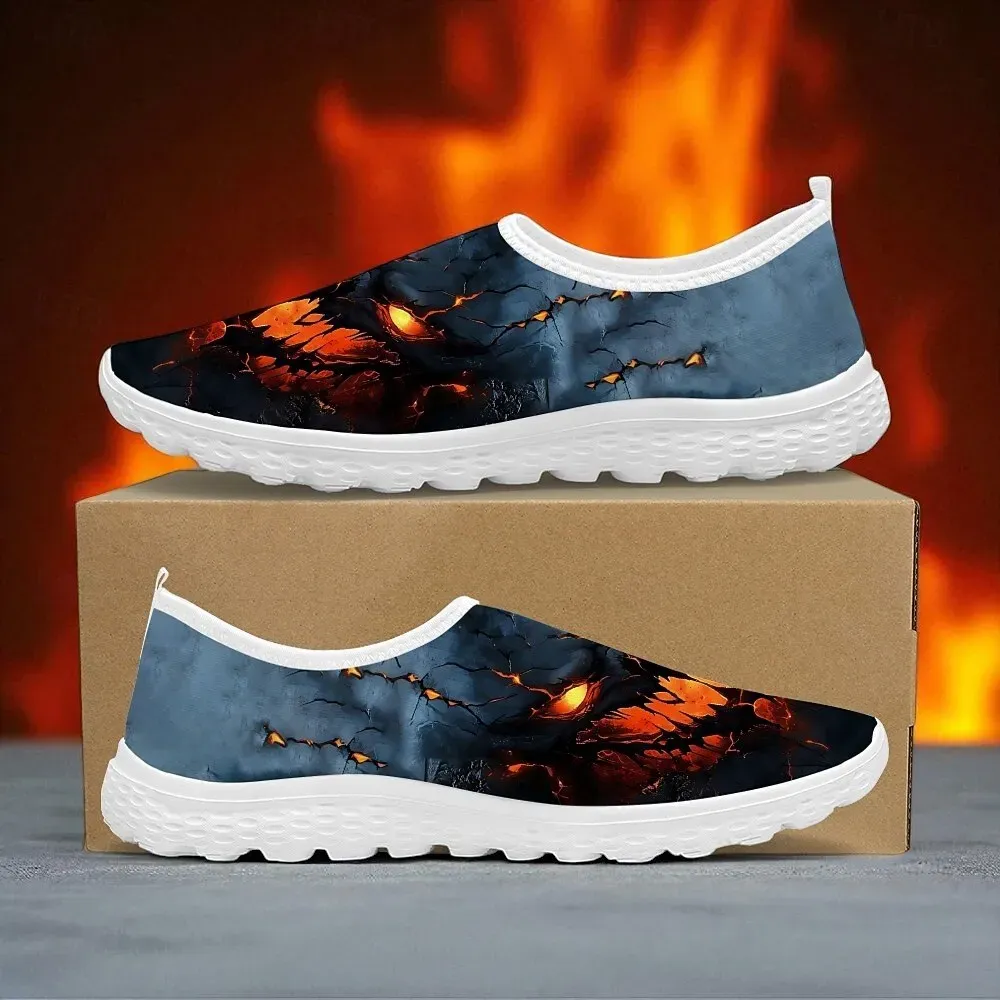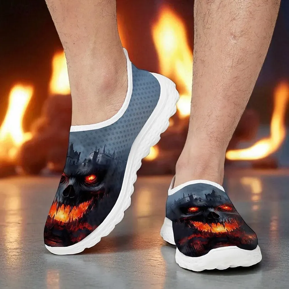 Men’s Mesh Slip-On Sneakers with Fiery Skull Print