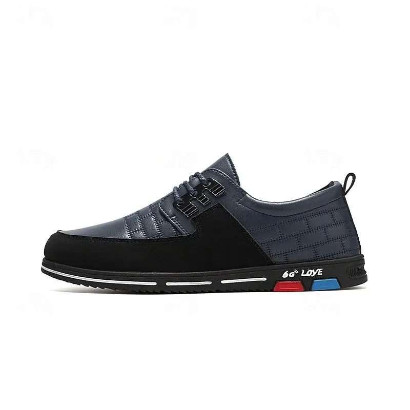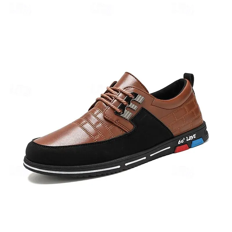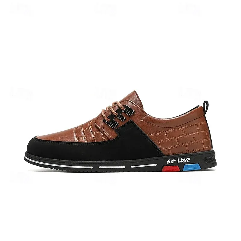 Men’s Brown Faux Leather Casual Hiking Shoes with Rugged Sole and Lace-Up Design