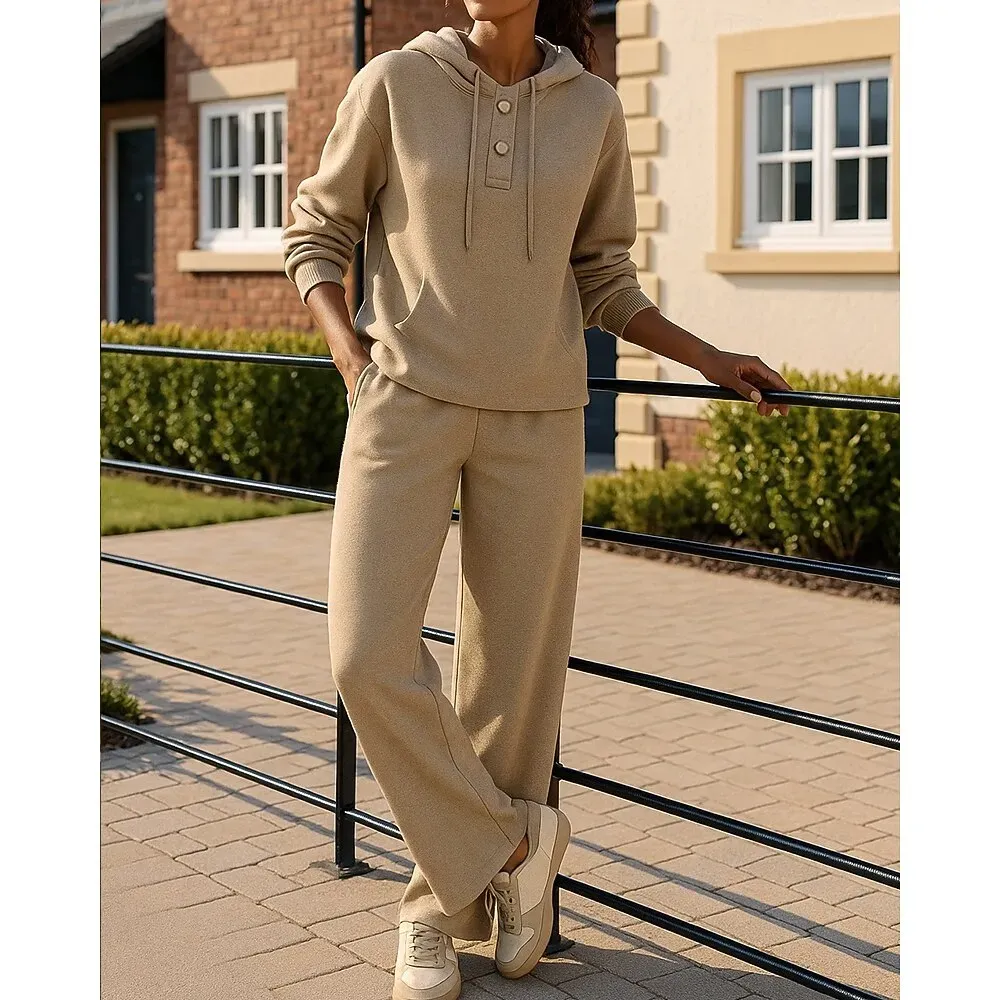 Women’s Sweatsuit Leisure Suit Spring Drawstring Hooded Solid