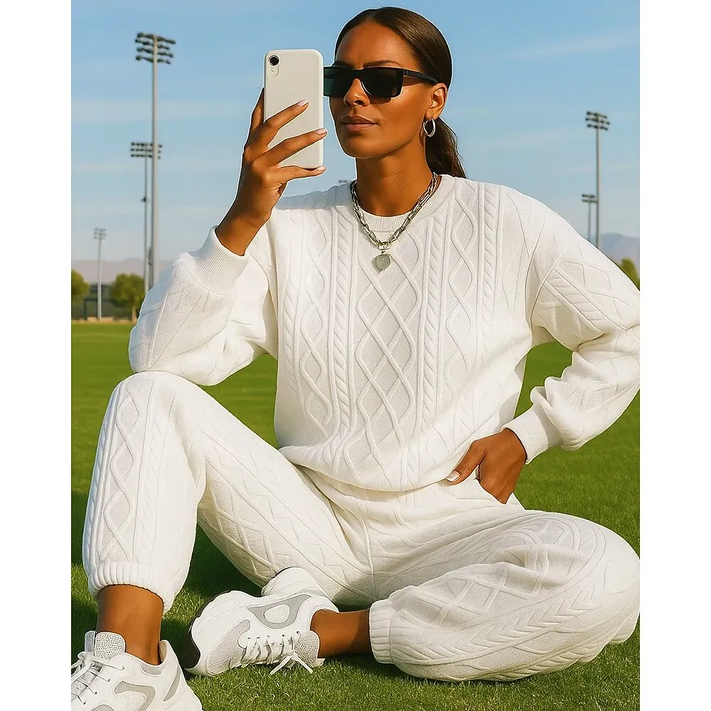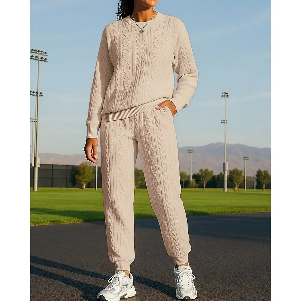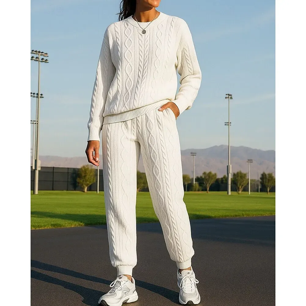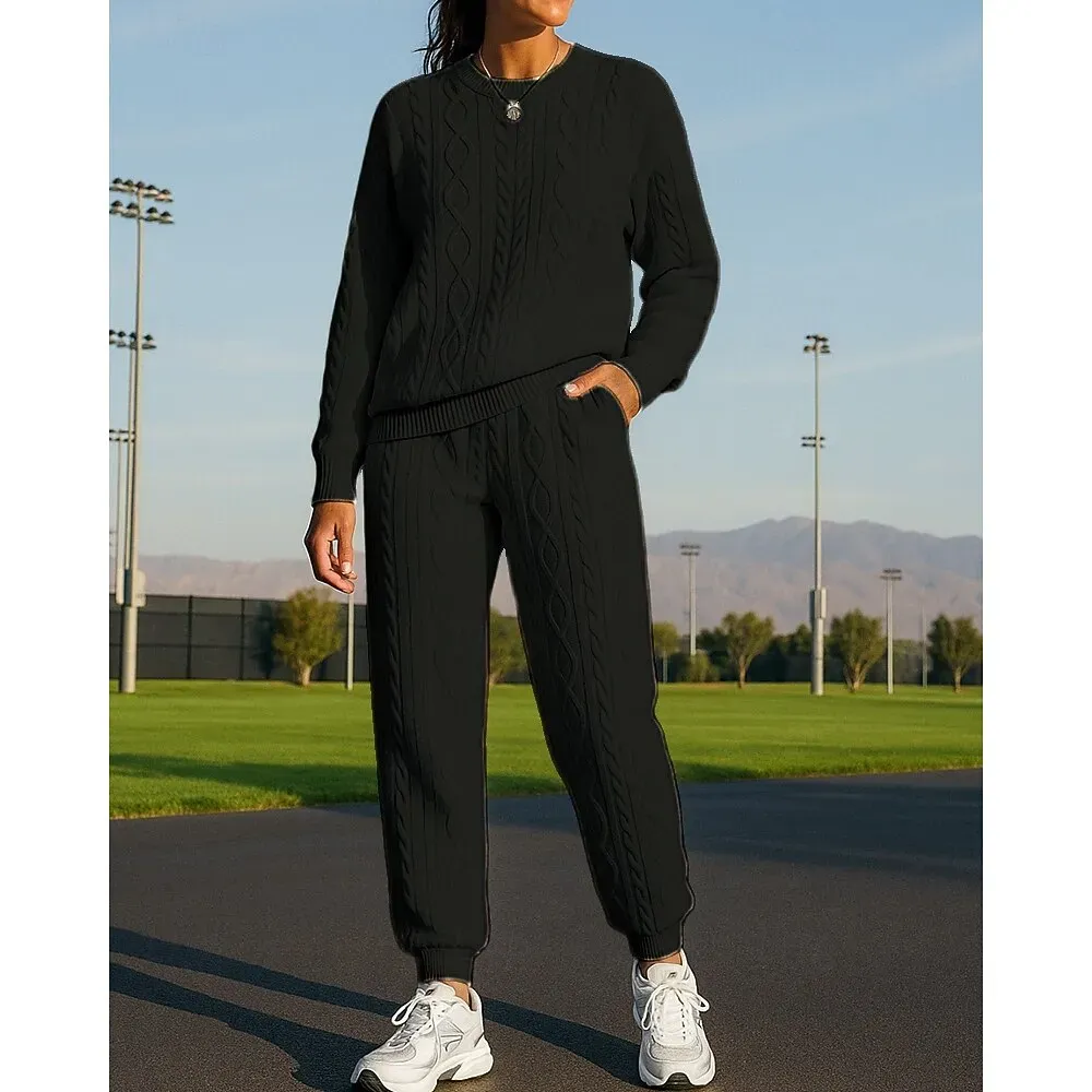Women’s Tracksuit Sweatpants Sportswear Fall Cable knit Solid